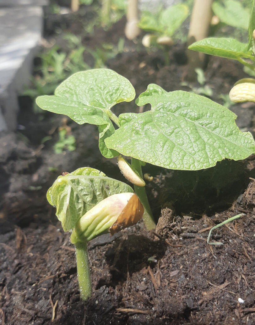 Hiernaast zie je een ontkiemende boon.